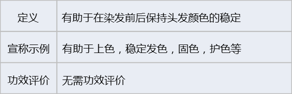 发色护理仅指保持发色稳定,不包含改变发色的功效。改变发色的按清洗后能否恢复分别归为染发类和美容修饰类化妆品。
